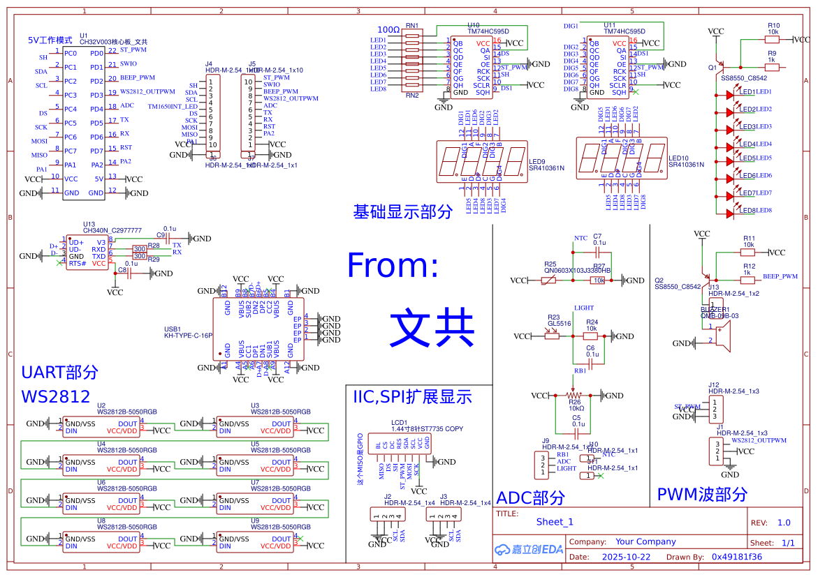 <p>本项目是一个基于沁恒微电子超值型RISC-V内核单片机CH32V003F4P6设计的综合性学习开发板。它不仅包含了单片机最小系统,更集成了多达10种常用外设模块<strong>,</strong>为初学者、爱好者及工程师提供了一个强大、全面且经过实践验证的RISC-V单片机学习与实践平台。</p>
